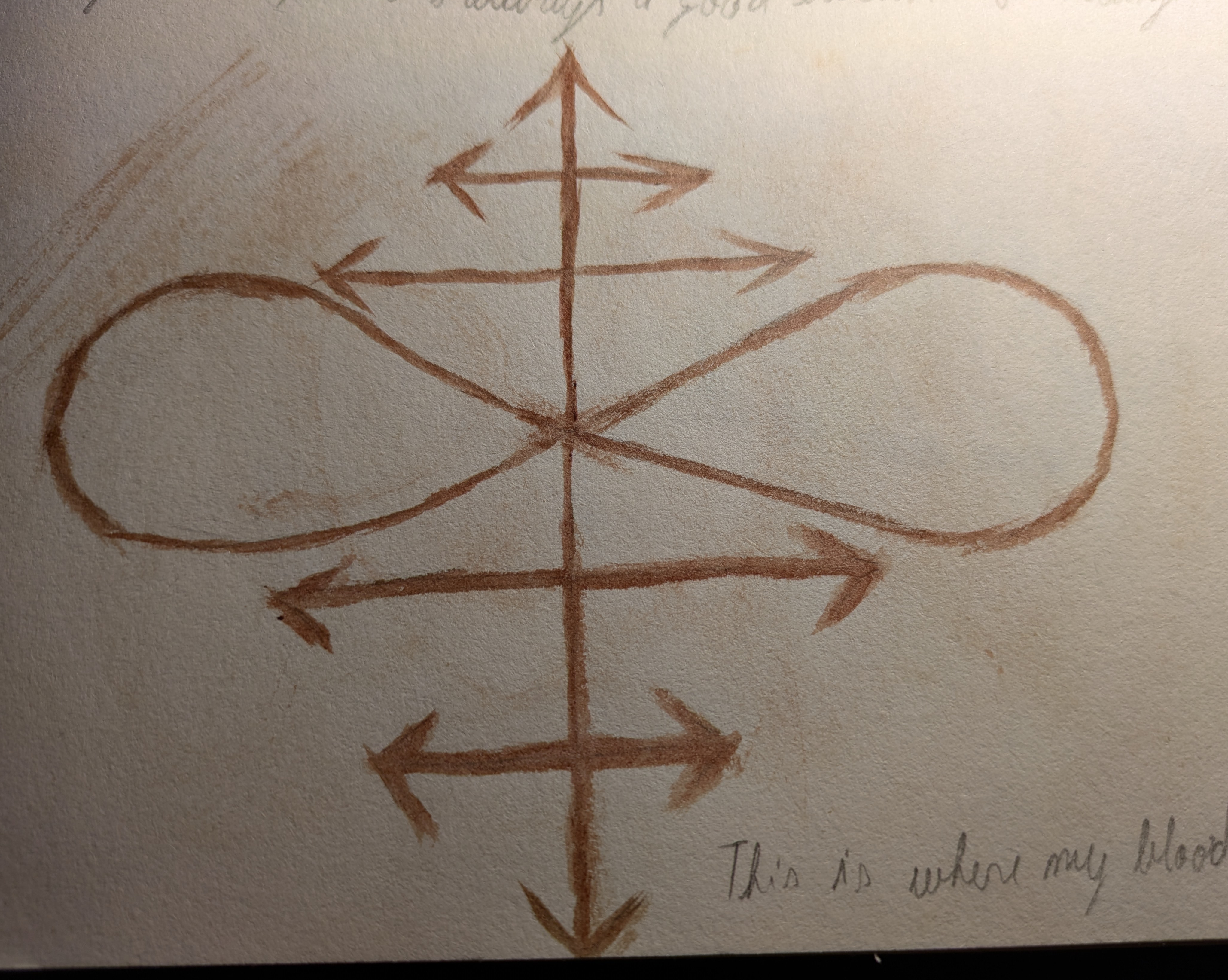 This symbol came to me many times in dreams and various visions. An irresistible force pushed me to lay it on paper with my own blood.